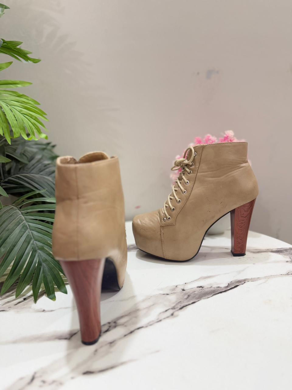 Beige laceup heeled ankle boot (Kayla)