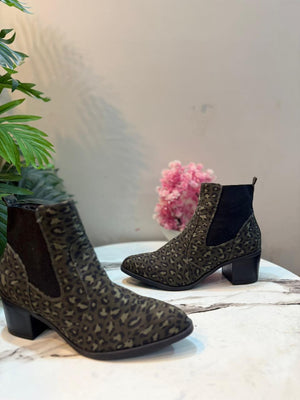 Leopard print suede zipper ankle boot (Blue box)