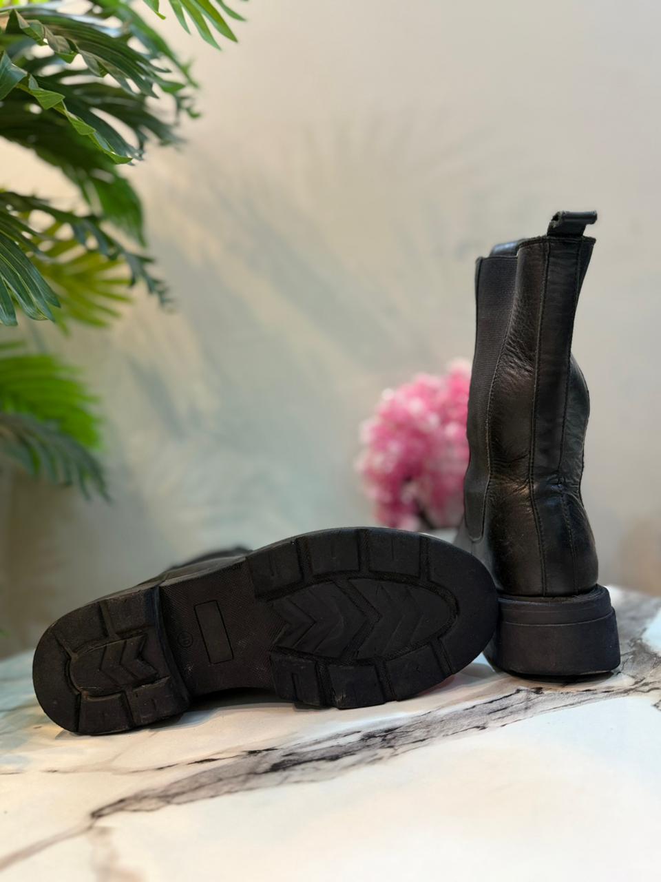 Black leather ankle boot (unknown)