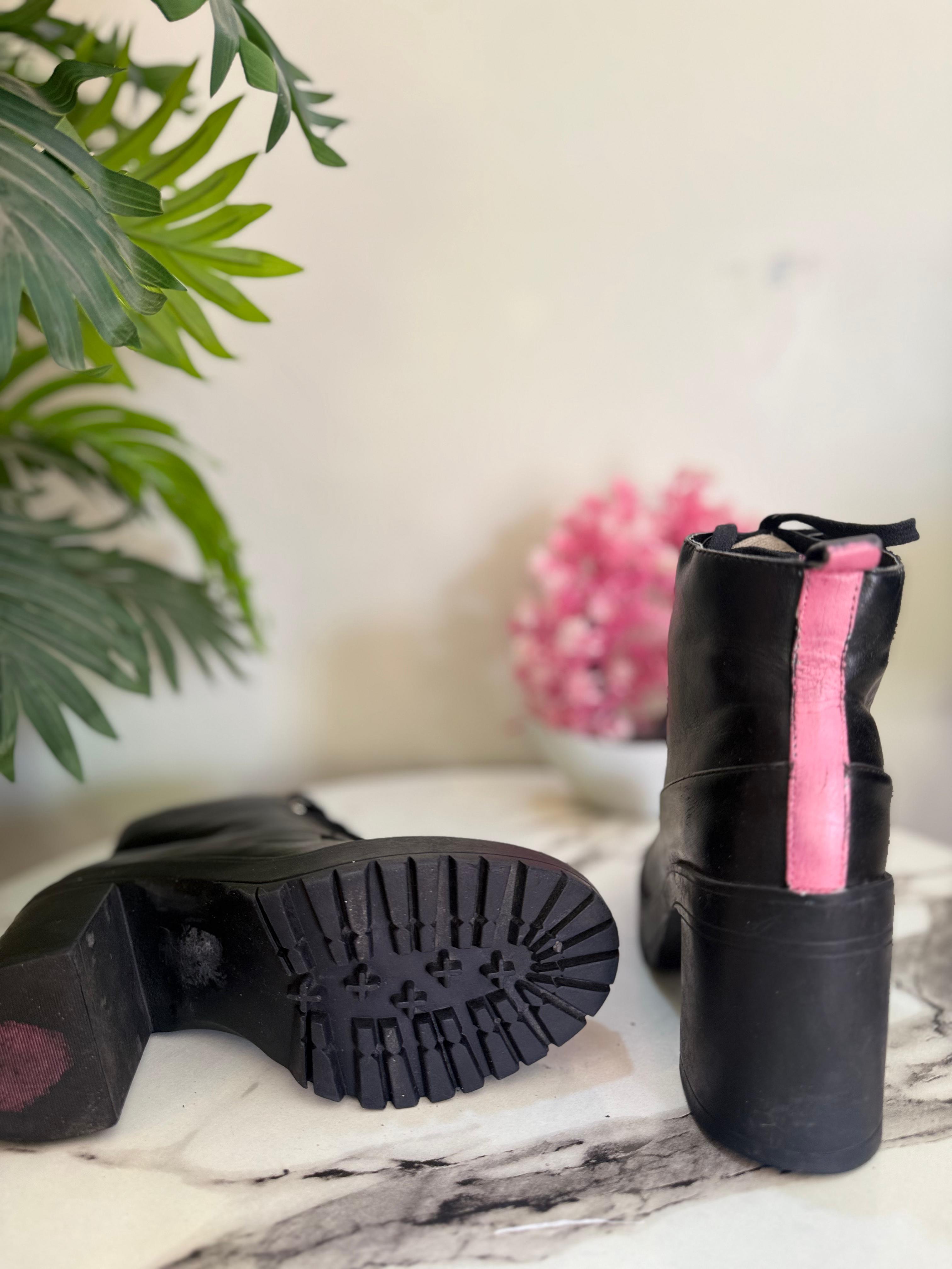 Black leather lace up ankle boot (Forever)