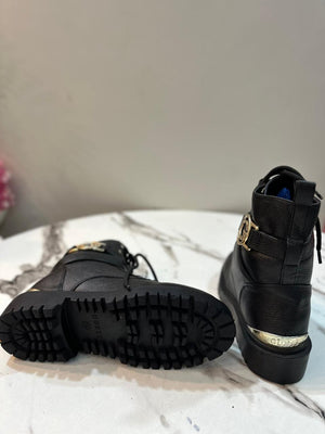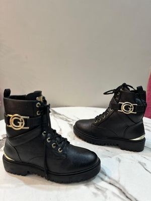 Black leather lace up zipper ankle boot (guess)