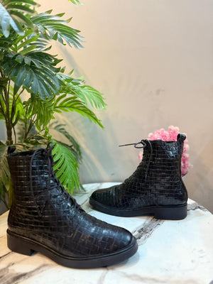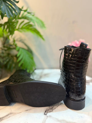 Black leather laceup zipper ankle boot (European brand)