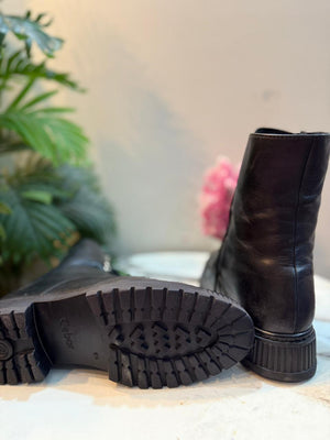 Black leather laceup zipper ankle boot (Gabor)