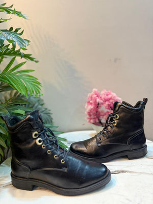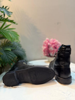 Black leather laceup zipper ankle boot (Unknown)
