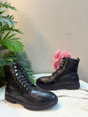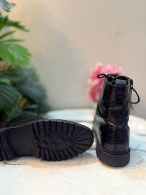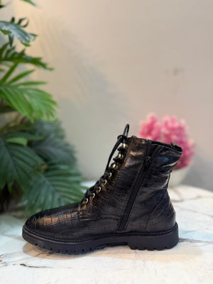 Black leather laceup zipper ankle boot (Young spirit)