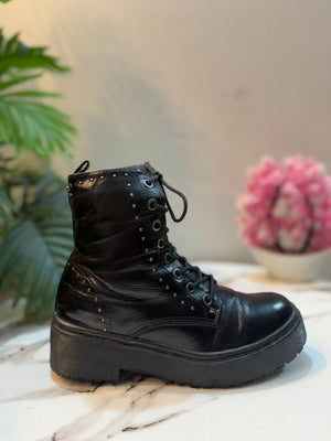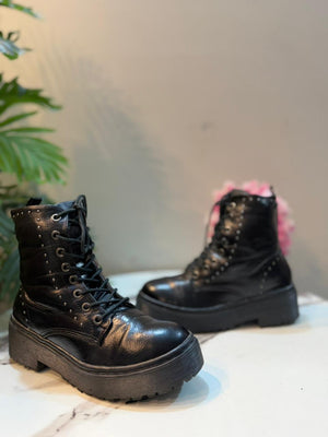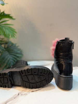 Black leather lacup ankle boot with side zipper (Refresh)