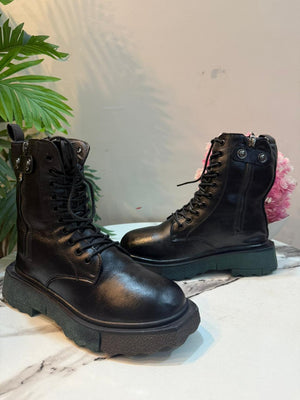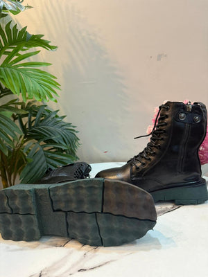 Black leather lacup zipper ankle boot ( unknown)