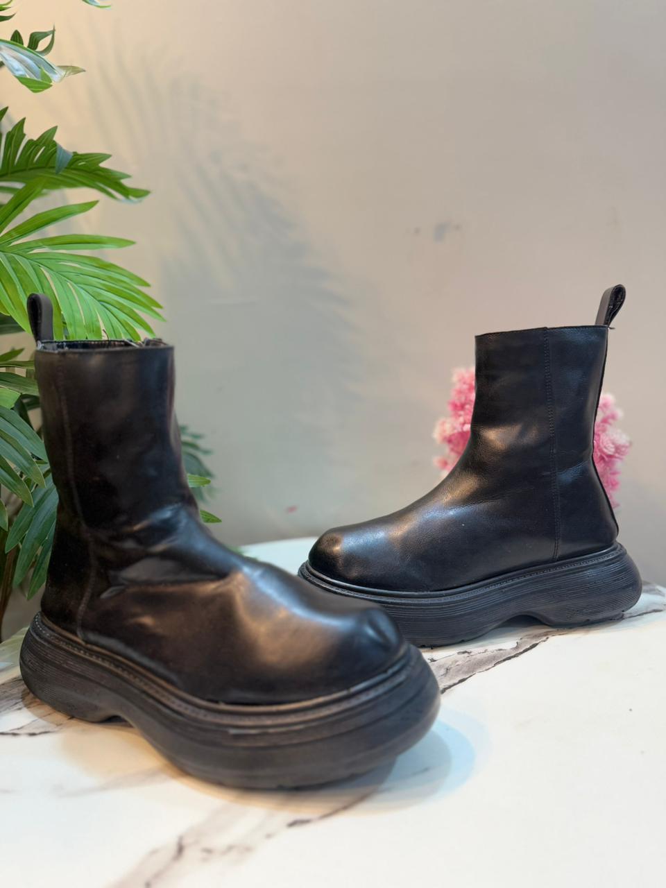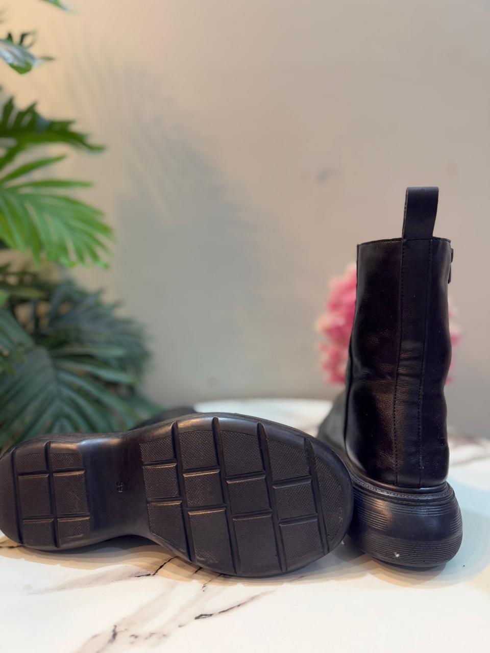 Black leather zipper ankle boot(Unknown)