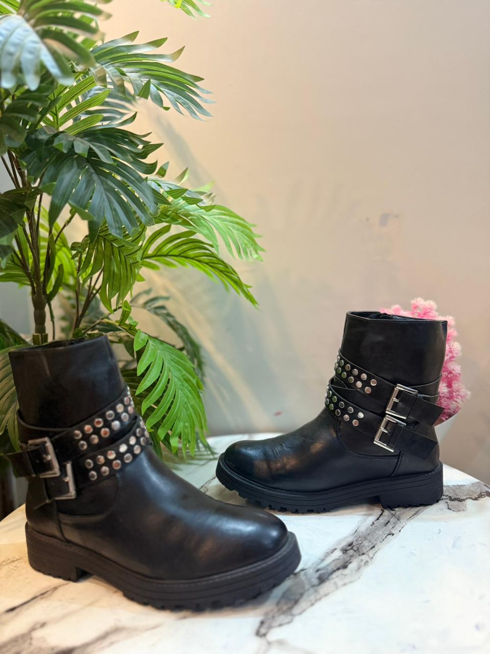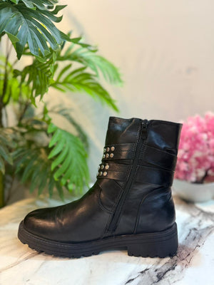 Black leather zipper ankle boot (European brand)
