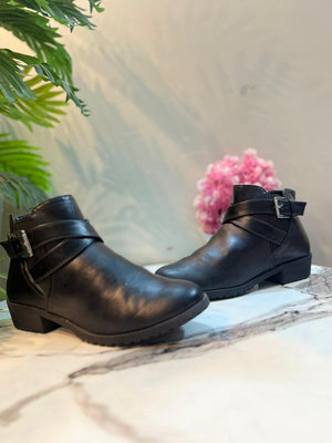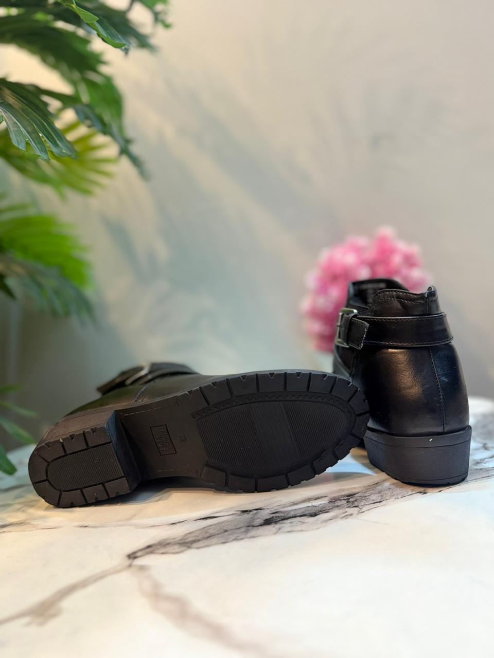 Black leather zipper ankle boot (time true)