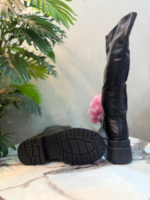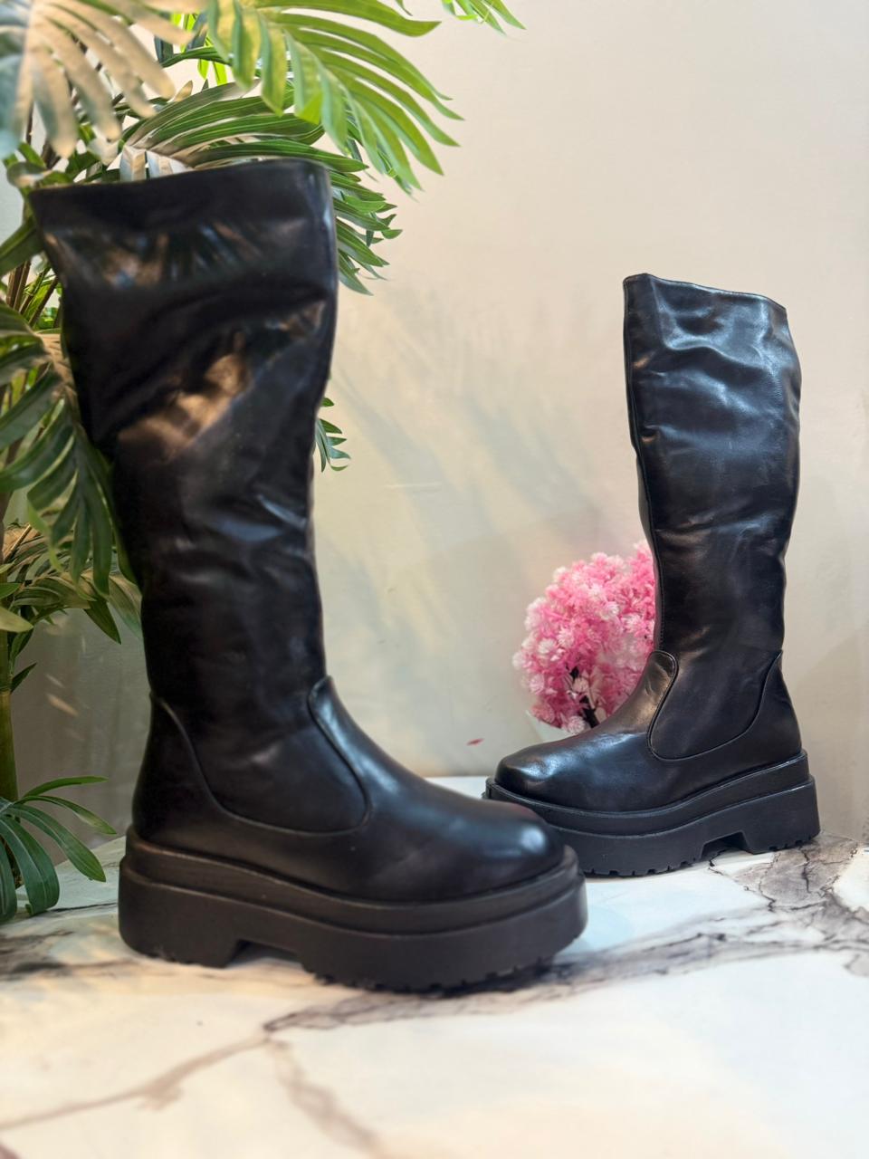 black leather zipper long boot (Unknown)