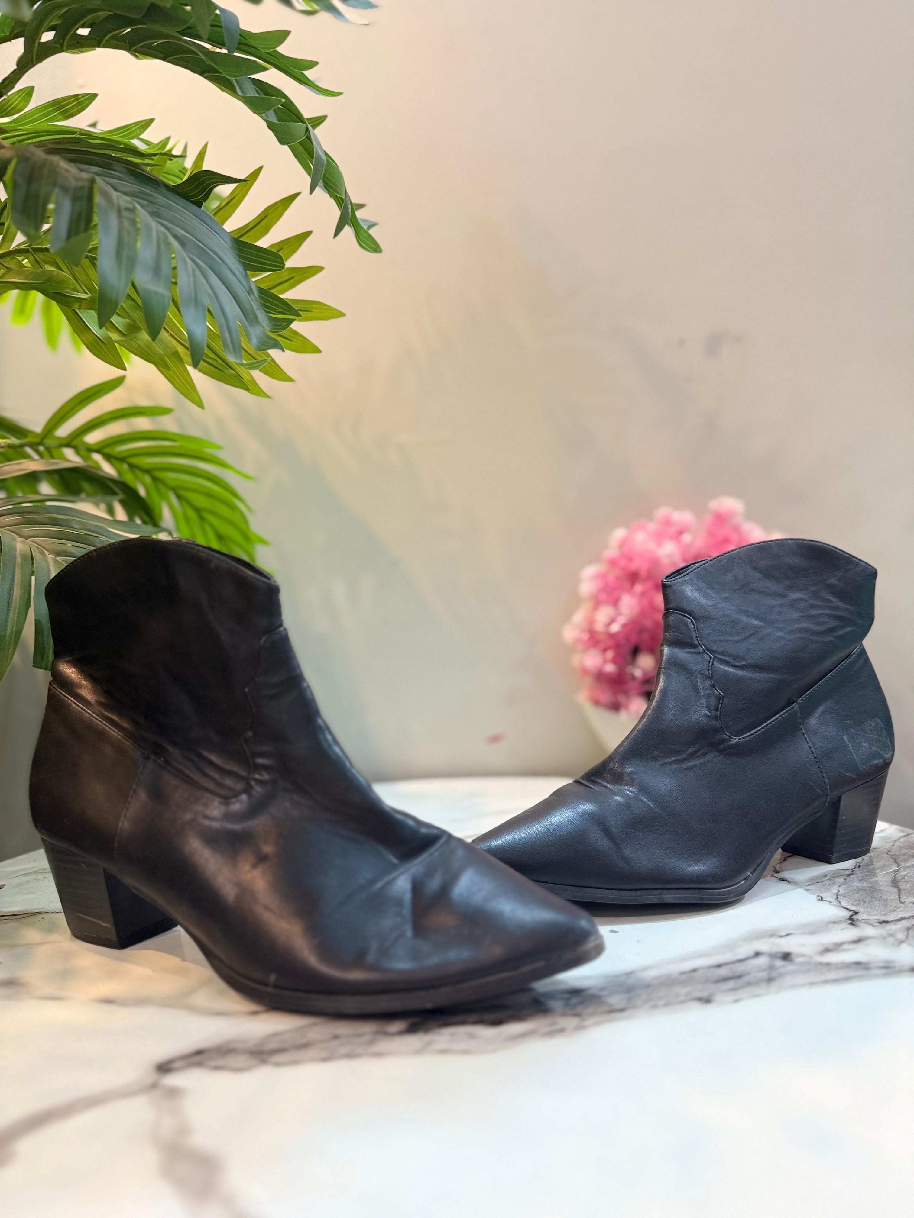 Black leather zipper ankle boot (unknown )