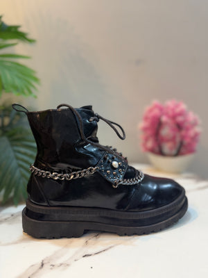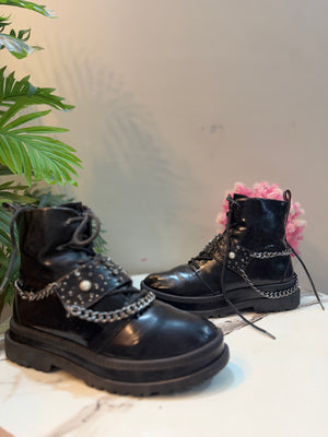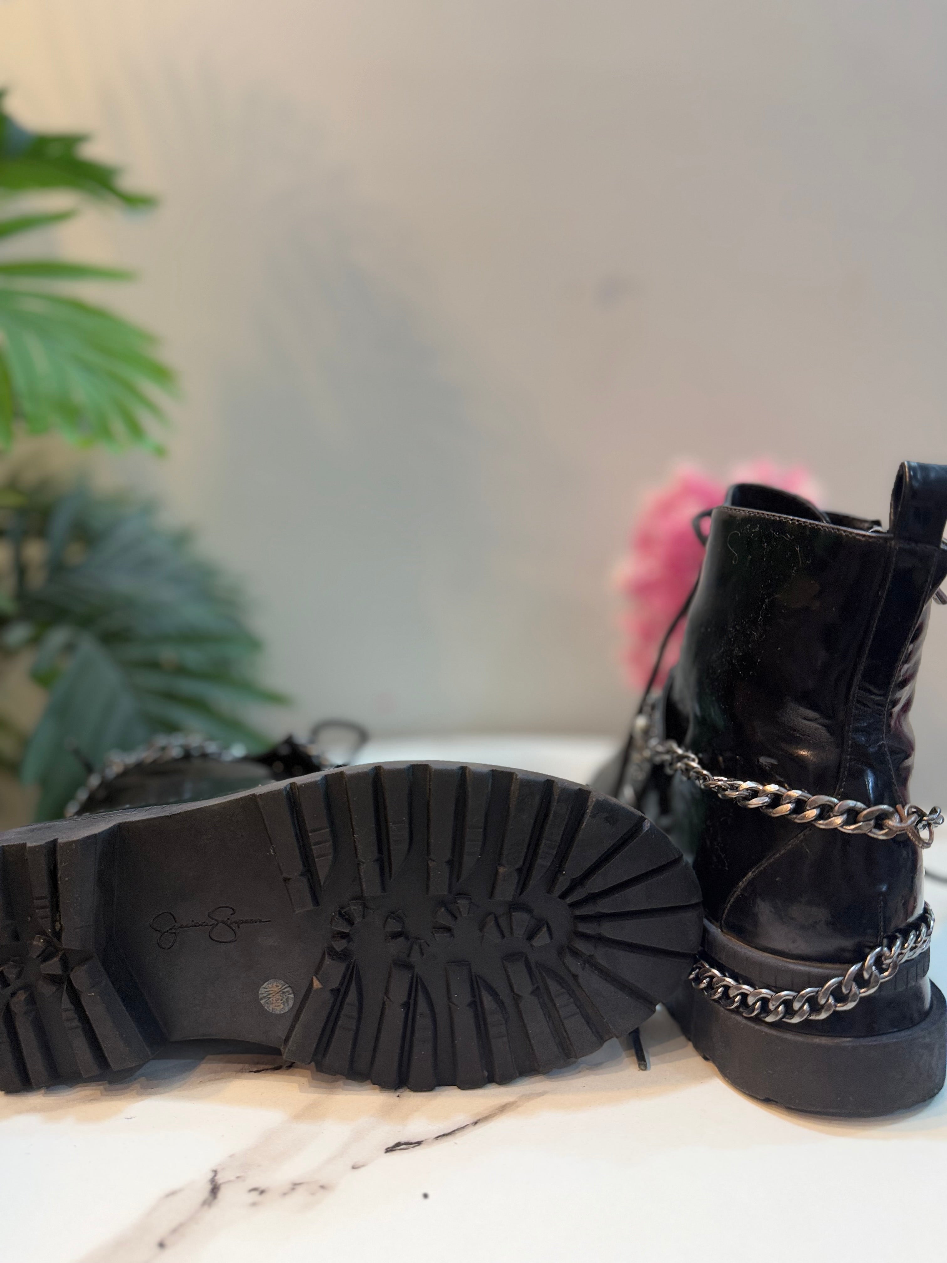 Black leather zipper ankle boot with chain (Gessica Simpson)
