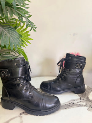 Black leather zipper lace up ankle boot (Europeanbrand)