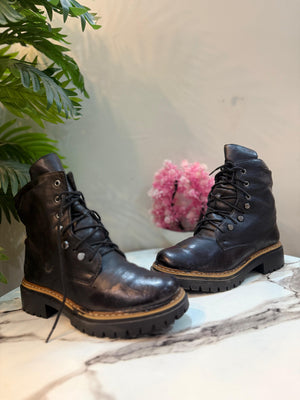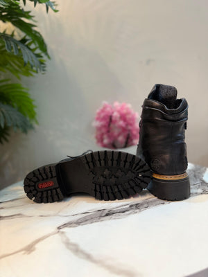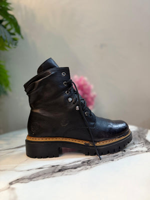 Black leather zipper lace up ankle boot (rieker)
