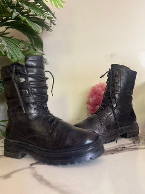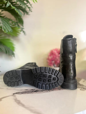 Black leather zipper lace up ankle boot (unknown)