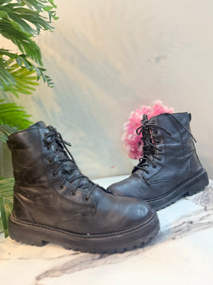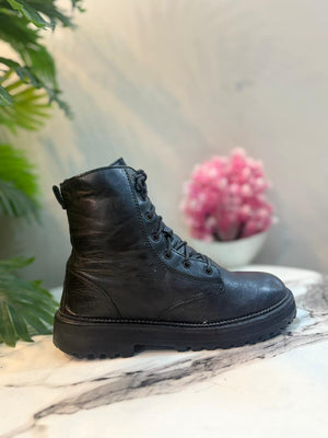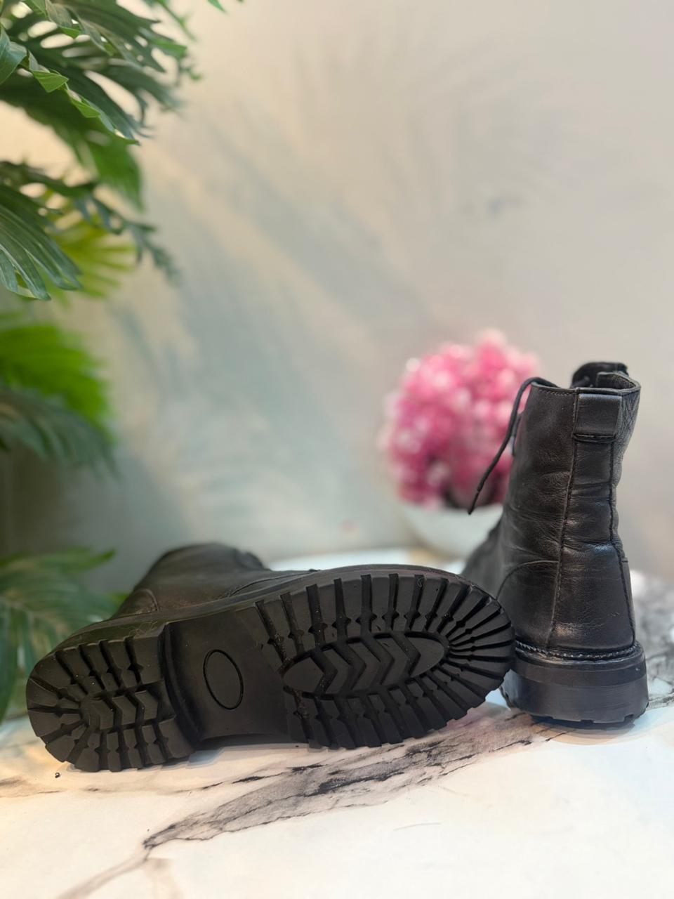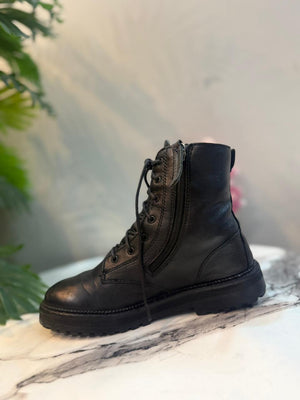 Black leather zipper lace up ankle boot (zara)