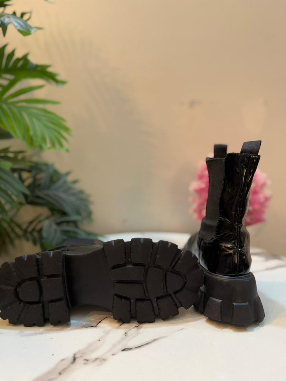 Black patent leather chelsea ankle boot(Nly Shoes)