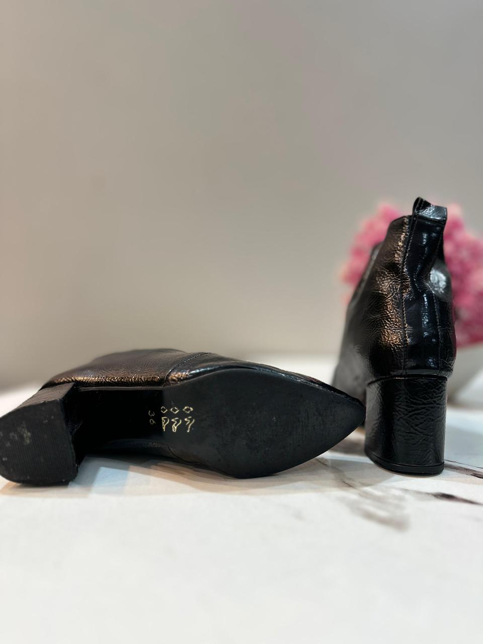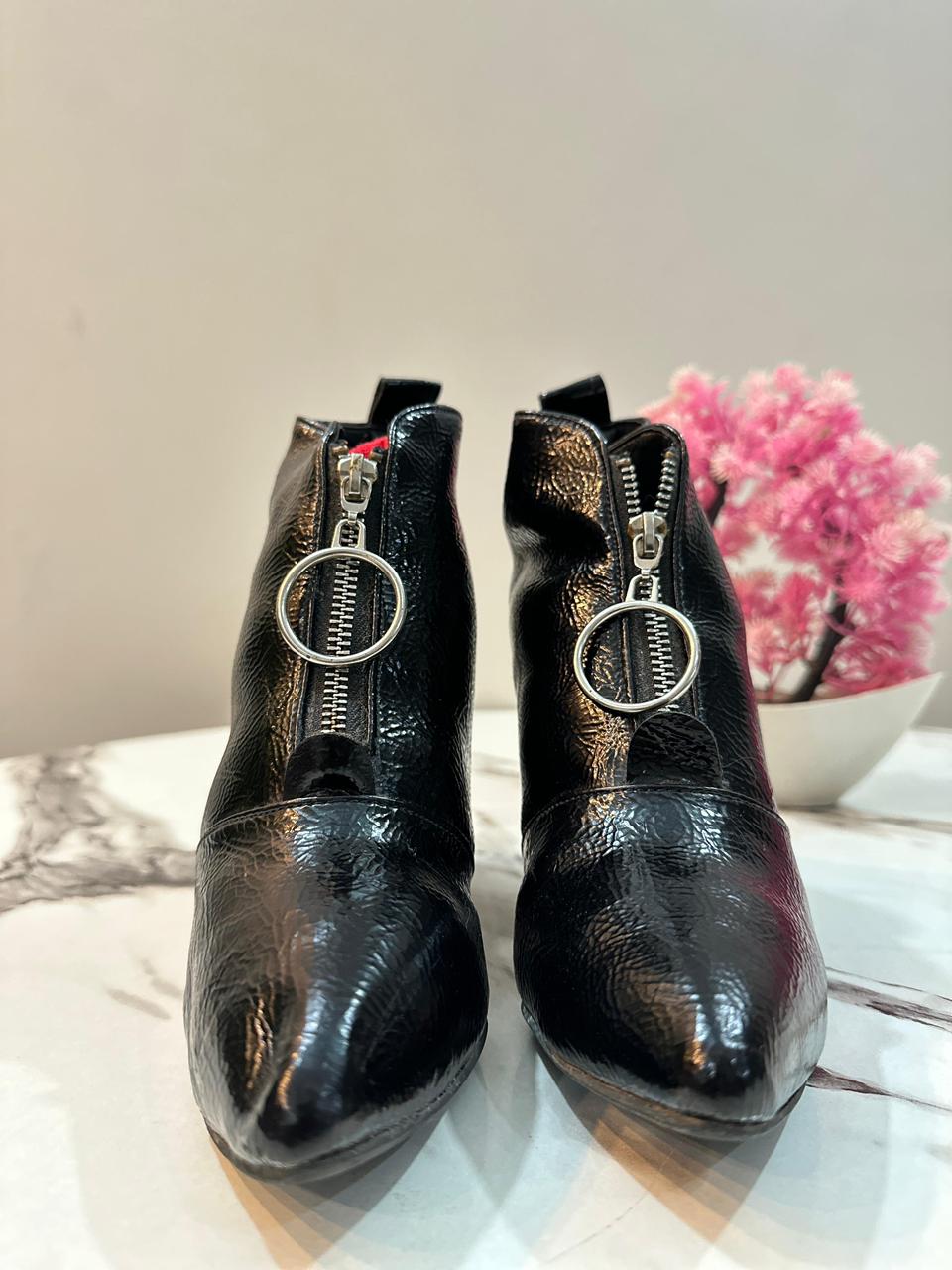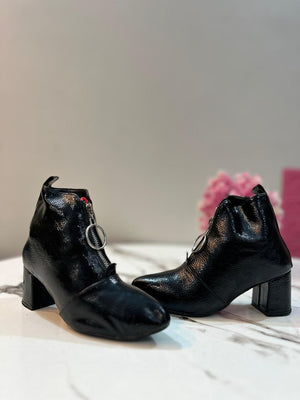 Black patent leather front zipper ankle boot (Unknown)