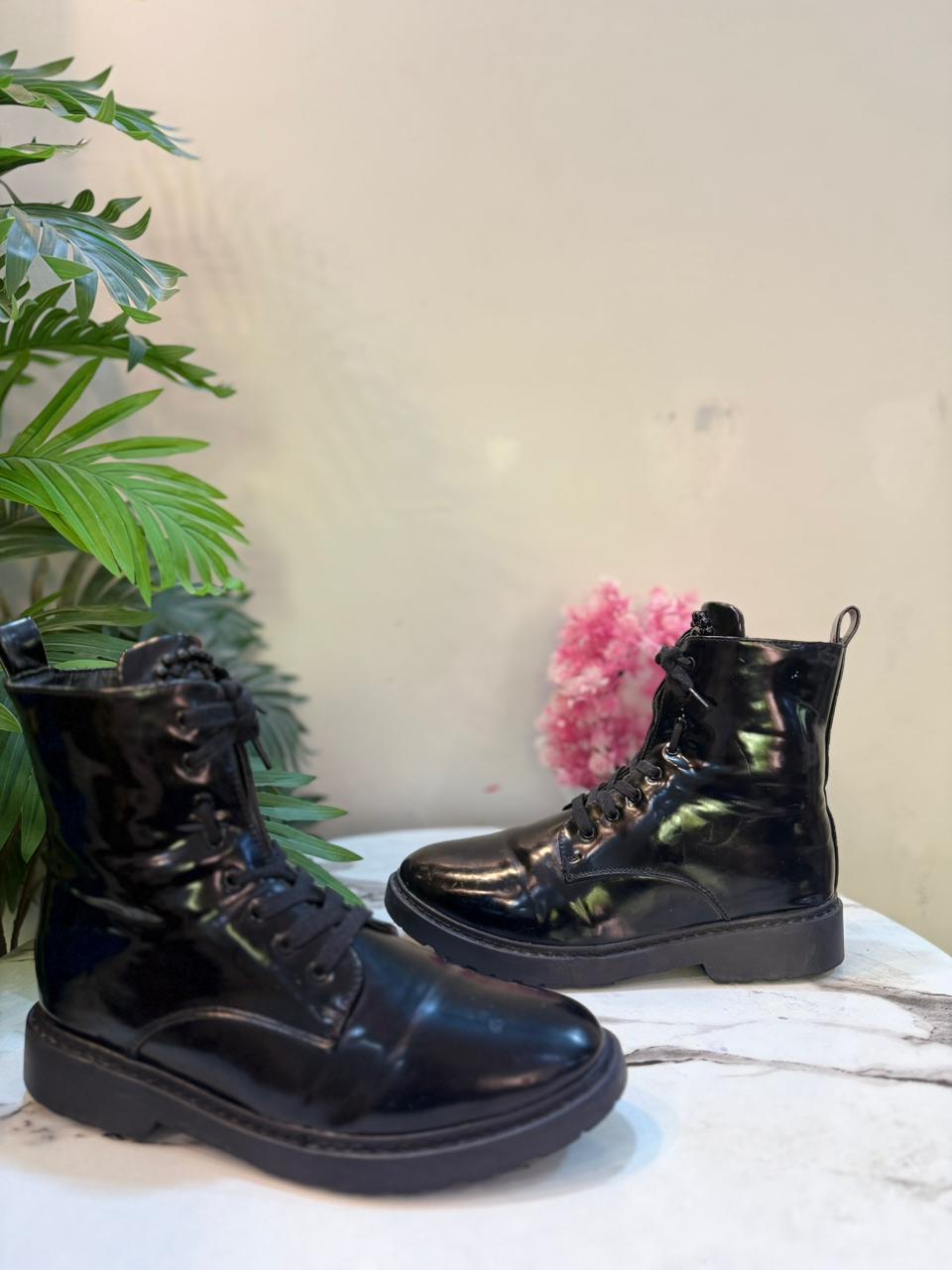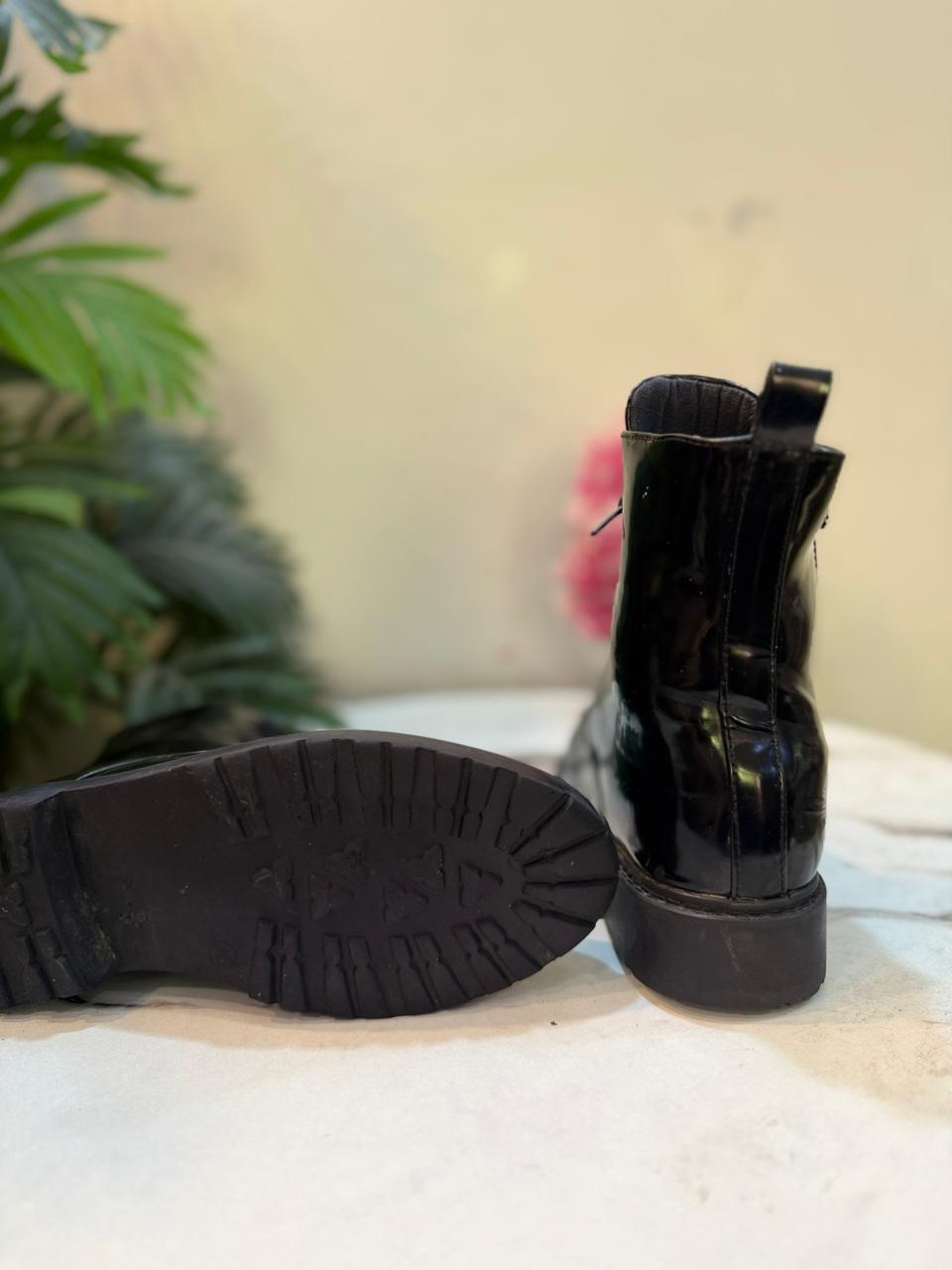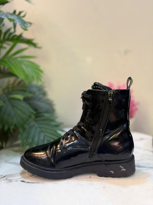 Black patent leather laceup zipper ankle boot (Findlay)