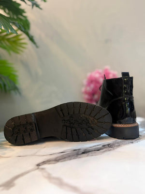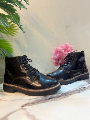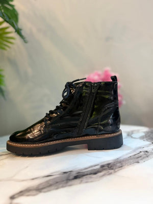 Black patent zipper lace up ankle boot (Graceland)