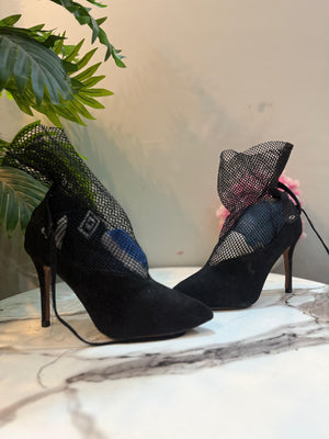 Black suede lace up ankle boot (unknown)