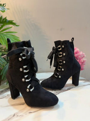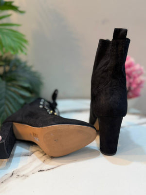 Black suede laceup zipper heeled ankle boot (About You)