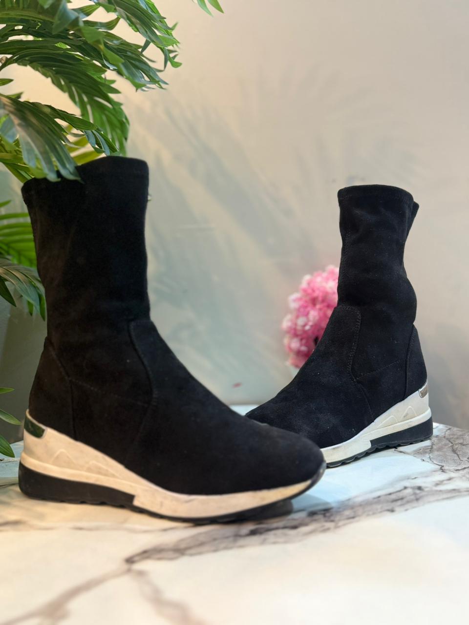 Black suede zipper ankle boot (Kyla)
