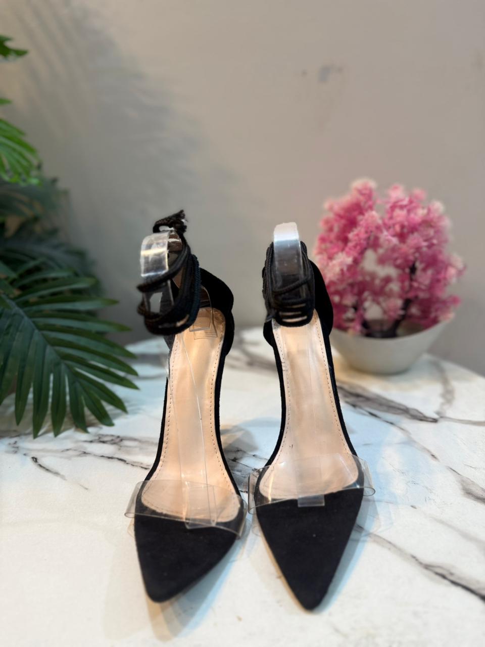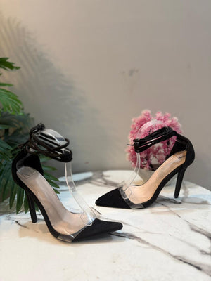 Black transparent laceup heel