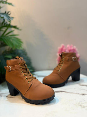 Brown leather laceup zipper ankle boot (Unknown)