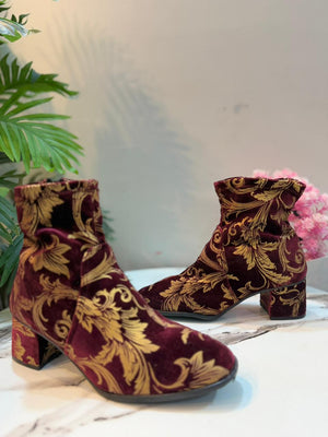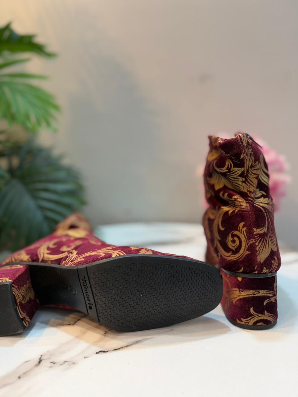 Burgendy velvet ankle boot with golden print(Tamaris)