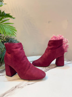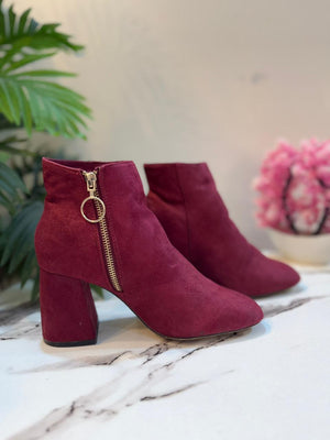 Burgundy suede zipper ankle boot (Stradivarius)