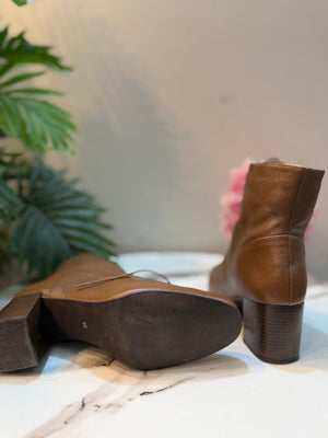 Chocolate brown laceup leather ankle boot (anna field)