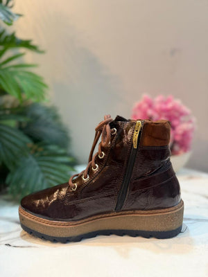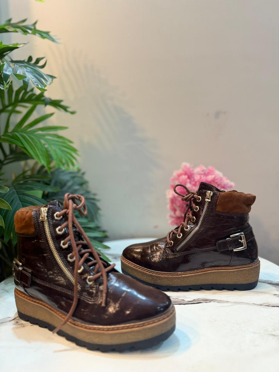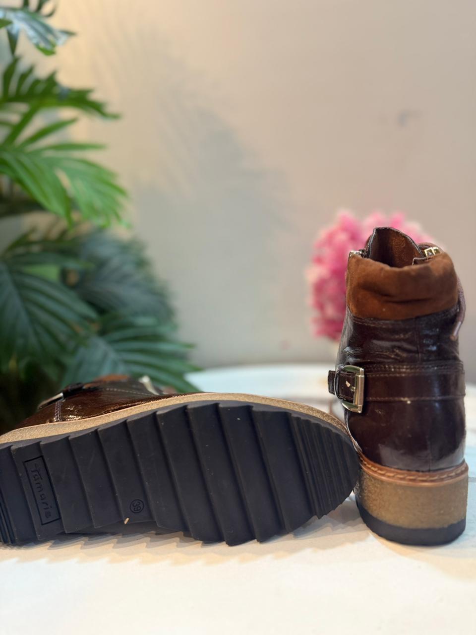Chocolate brown patent leather laceup ankle boot (Tamaris)