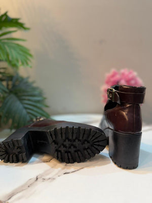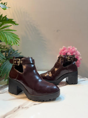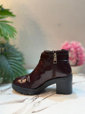 Deep maroon patent leather ankle boot with side zipper (Stradivarius)