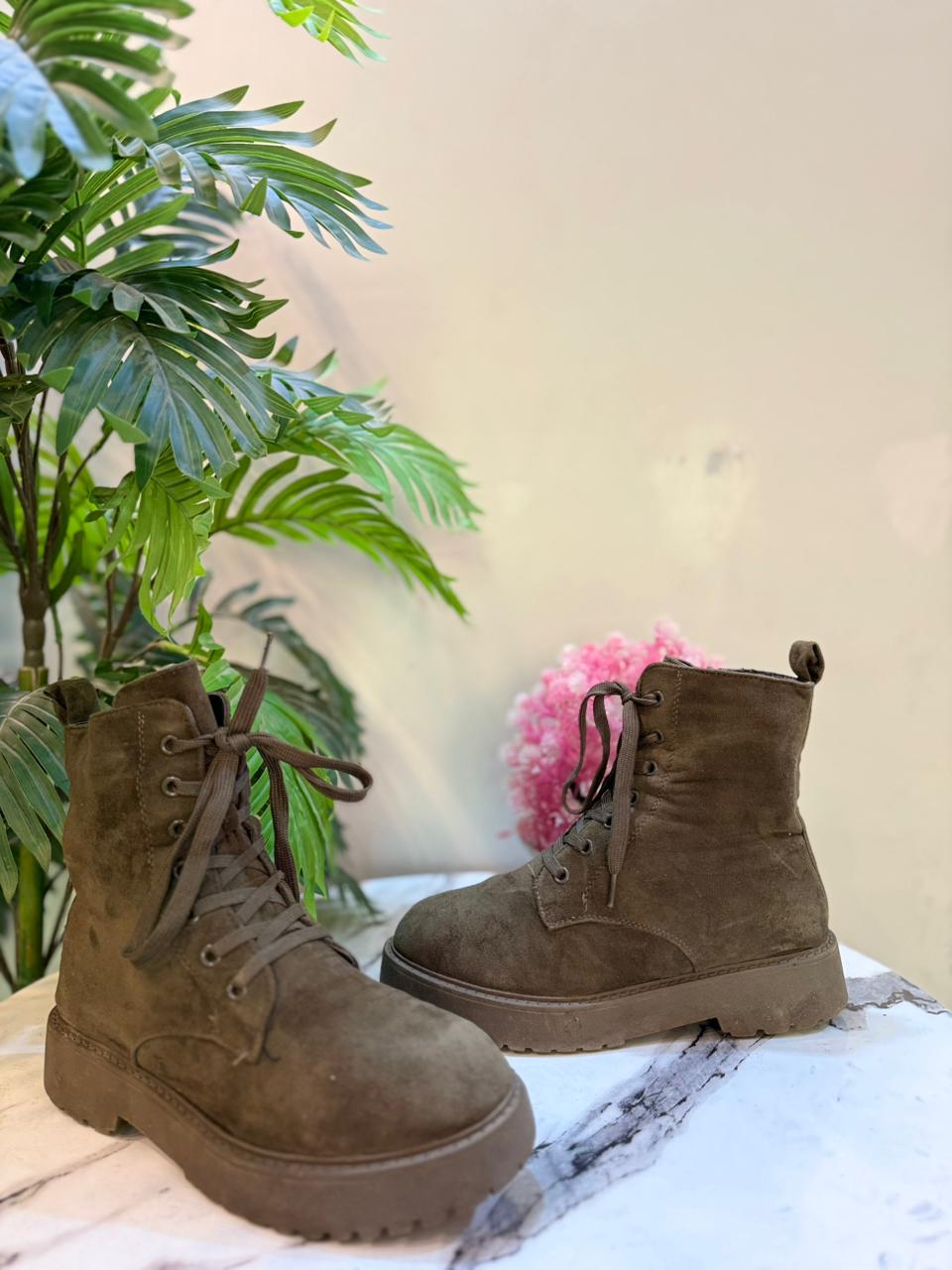 Green suede laceup zipper ankle boot (Unknown)