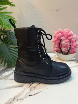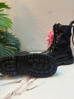 Leather zipper laceup black ankle boot(Versace jeans couture)