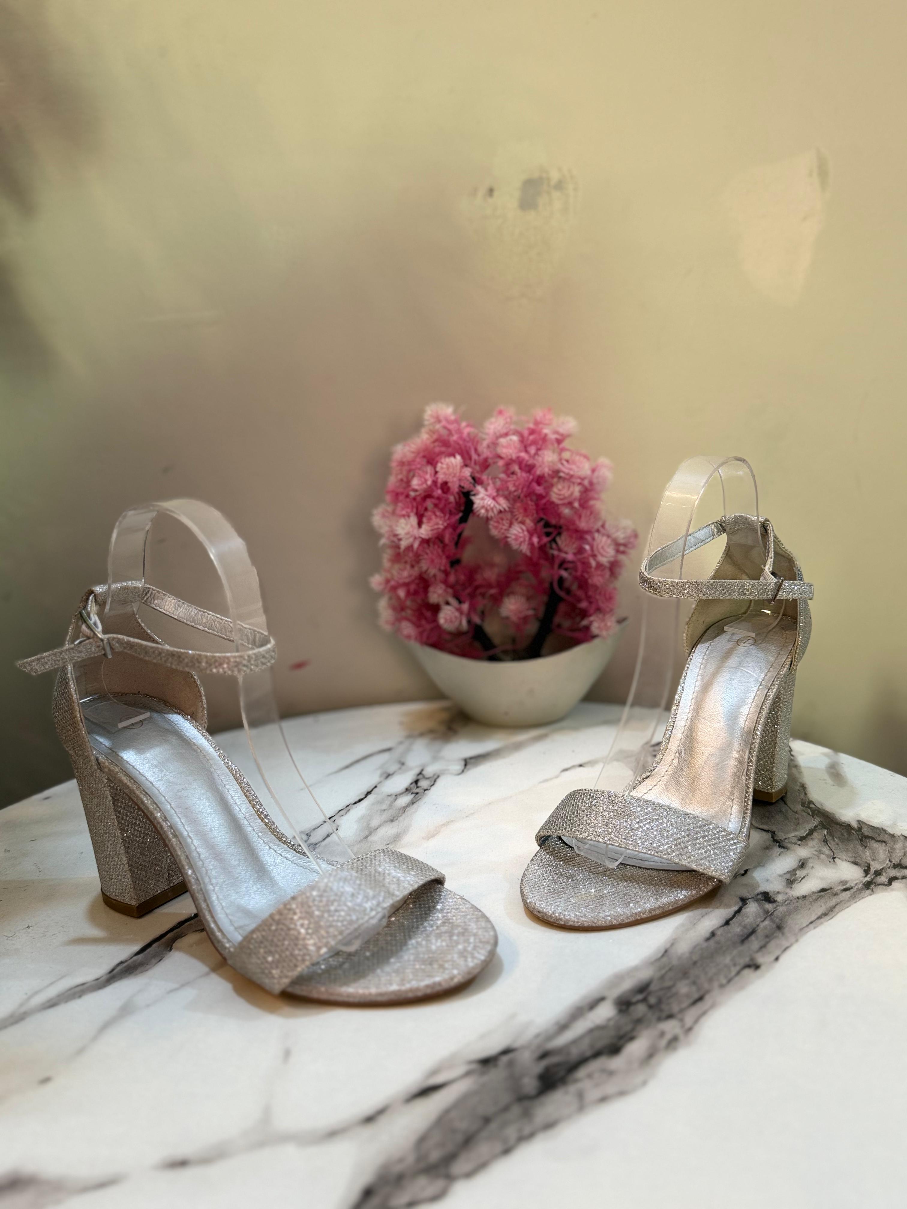 Silver glittery block heel