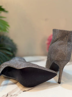 Silver shimmer leather heeled zipper ankle boot (Sacha essential)