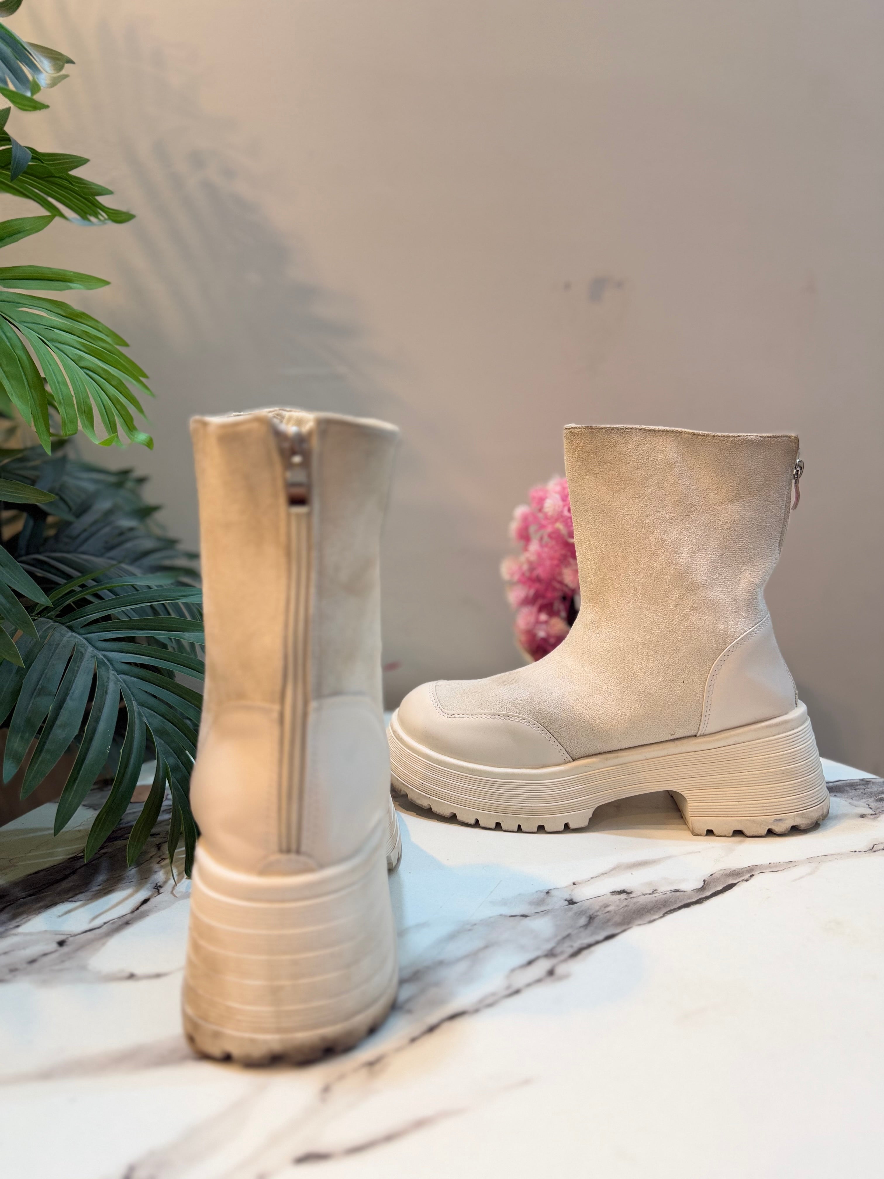 White suede back zipper ankle boot (unknown)